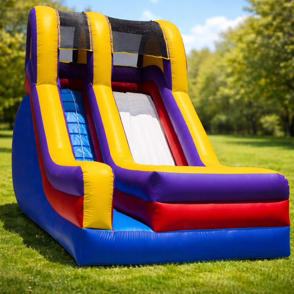 Potrzebujemy jedynie równego podłoża o wymiarach nieco większych niż sam dmuchaniec oraz dostępu do standardowego gniazdka elektrycznego. Resztą zajmiemy się my.